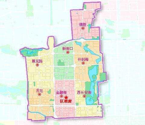 中華人民共和國成立后,1950年4月18日,中央人民政府政務院批準將北京市調整合并為16個區,今區境內為第2區和第4區全部、第5區之西半部及第13、第14區的一部。1952年9月,市政府再次調整區劃,今區境內為西單區和西四區及海淀區、前門區的一部分,第2區更名為西單區,第4區更名為西四區。1958年5月經國務院批準,西單、西四二區合并為西城區至今。1987年9月北京市將朝陽區馬甸0.6平方公里劃給西城。至此,西城區面積31.66平方公里。現在轄區有西長安街、展覽路、新街口、金融街、月壇、德勝、什剎海七個街道辦事處。