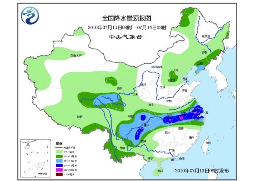 據中央氣象臺監測顯示,昨天5時至今天5時,江蘇中部、安徽中部和湖南西北部部分地區及四川南部局地降雨100-170毫米,江蘇泰州、姜堰、海安和湖南沅陵降雨量達200-230毫米。