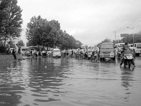 沈陽市排水處書記宋金城告訴記者, 最嚴重時,積水已經齊腰深,而且形成了一個長300米、寬20多米的“湖泊”。因為水量較大,即便有車輛,也難以通行。