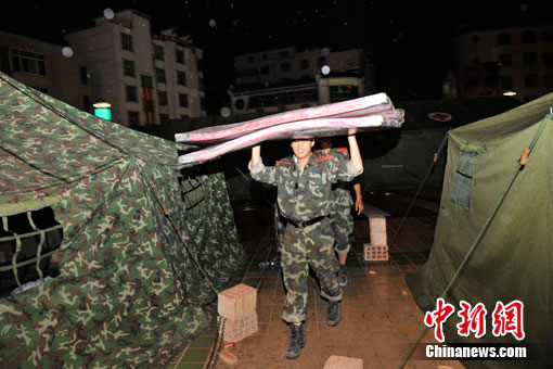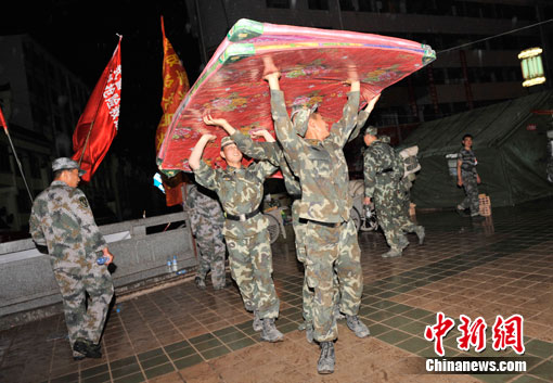 中新網舟曲8月11日電(記者 唐偉杰)在數十分鐘的密集電閃雷鳴之后,舟曲災區開始降雨,目前雨勢較小。