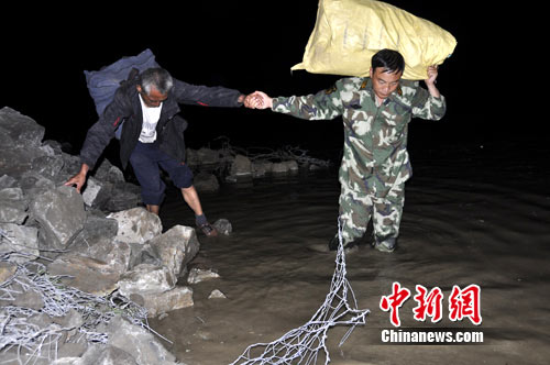 聞?dòng)嵑螅蜗拦俦鴶y帶救生器材火速趕往事故現(xiàn)場進(jìn)行救助,救援官兵到達(dá)現(xiàn)場后發(fā)現(xiàn),由于天色已黑,白天在此施工開路的車輛和工人已經(jīng)逐漸撤回,但施工地段對(duì)面尚有上千群眾等待救援和疏散。