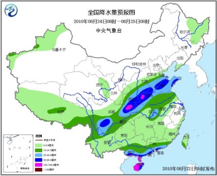 中新網8月22日電 據中央氣象臺報道,未來三天,受冷空氣與暖濕氣流的共同影響,內蒙古東北部、西北地區東部、東北大部、華北中南部、黃淮、江淮、江漢、江南中西部、華南、西南地區以及臺灣等地有小到中雨或陣雨天氣,其中,東北東南部、華北南部、西北地區東南部、黃淮大部、江漢北部、四川大部、重慶大部、云南西北部、西藏東南部、華南南部等地的部分地區有大雨或暴雨,局地有大暴雨;上述部分地區并伴有短時雷雨大風或冰雹等強對流天氣。