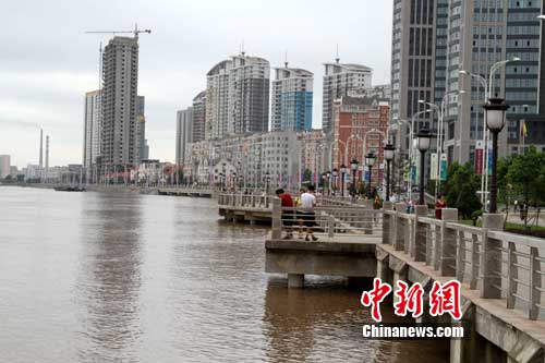 中新網丹東8月23日電 (宋太盛 董永君)受19日至21日大暴雨影響,鴨綠江遼寧省丹東段洪水一度淹至沿江大道上,道路水深超過1米。22日下午,鴨綠江水位開始恢復正常。