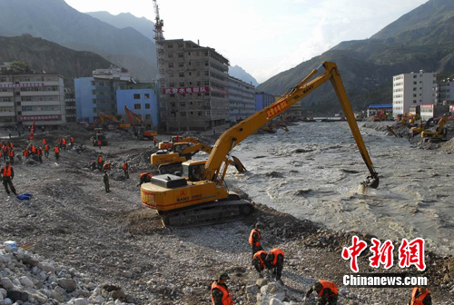 自8月8日以來,武警水電部隊500余名官兵和130余臺大型機械設備日夜連續奮戰在舟曲白龍江堰塞體搶險一線,他們采取“挖、裝、運”相結合、調運長臂反鏟深掏、人工安裝鐵絲籠固定護坡等作業方式,疏通河道,加快白龍江存水泄流速度,盡快消除洪水隱患。