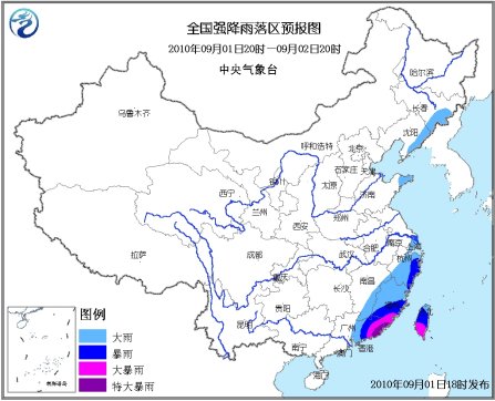 9月1日20時到2日20時,廣東中東部、福建、浙江大部、上海、山東半島、遼寧東南部、吉林東南部及臺灣等地有大雨或暴雨,福建東南部、廣東東部和臺灣南部的部分地區有大暴雨,局地有特大暴雨,上述部分地區并伴有短時雷雨大風等強對流天氣。