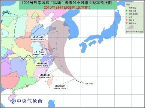 受“瑪瑙”和西南季風的共同影響,9月4日中午到5日中午,巴士海峽、巴林塘海峽、臺灣以東洋面、東海大部將有6-8級大風,“瑪瑙”中心經過的附近海域風力可達9-10級,陣風11-12級。