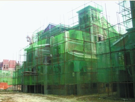 小區進門處,碩大的工程規劃圖引起了記者的注意:這個小區的規劃是成棟的聯排別墅,廣告宣傳語標有‘西班牙風格別墅’字樣。小區內建筑工人正在施工。
