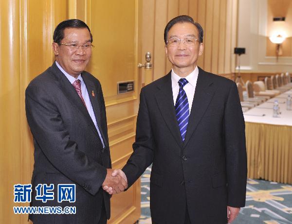 溫家寶說,中柬兩國關系正進一步發展。2006年我訪問貴國時,兩國決定建立全面合作伙伴關系。這把兩國關系推進到一個新階段。中柬友誼經歷了時間的考驗,在關鍵時期和在重大問題上,我們得到了貴國的寶貴支持。在這方面,首相表現出了政治家的堅定意志。我很愿意就中柬雙邊關系和雙方共同關心的問題和首相交換意見。