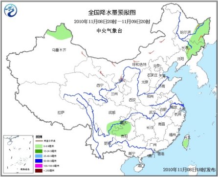 10日20時至11日20時,內(nèi)蒙古中東部、黑龍江南部、吉林、遼寧中北部等地有小到中雪或雨夾雪;河北北部、山西北部、四川東部和南部、重慶、貴州大部、云南中北部、湖北西部、湖南西北部及海南等地有小到中雨。西北地區(qū)中東部、內(nèi)蒙古大部、華北、東北、江淮、黃淮等地有4~6級風(fēng),局地陣風(fēng)7~8級。南海東北部和中部海域?qū)⒂?~7級、陣風(fēng)8級的東北風(fēng)。
