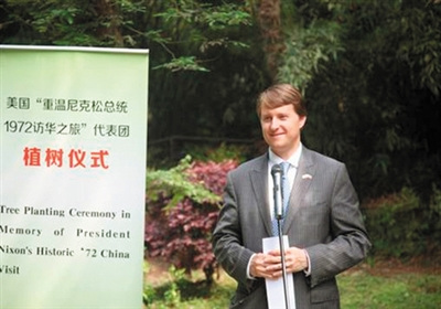 今年,在尼克松誕辰100周年之際,他的外孫考克斯來到中國,在杭州植物園內外祖父送來的北美紅杉旁,又種下了兩棵南方紅豆杉。