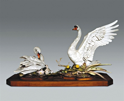 在中國國家博物館國際友誼館中,有一組“天鵝之家”燒瓷工藝品——一只雄天鵝引頸展翅,一只雌天鵝曲頸梳理,三只小天鵝偎依在父母身邊,它們見證了中美友誼的開端。
