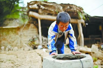 梅川鎮(zhèn)地布尺村15戶人家的蓄水井,因為地震出現(xiàn)滲漏已近干涸,村民面臨吃水困難 特派記者彭年 攝
