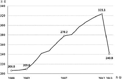 2000年—2013年發(fā)展黨員數(shù)量變化情況