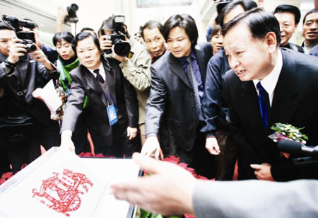 張樹賢介紹,當(dāng)他在電視畫面上看到胡錦濤總書記剪窗花的情形時,就想到要在湖北舉行的第二屆全國剪紙藝術(shù)展,希望把胡錦濤總書記的剪紙“請”到湖北來展出。與定西方面商量后,定西市剪紙協(xié)會同意將《回娘家》剪紙“借來”湖北展出,再還回去。