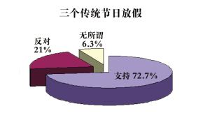 昨天,國(guó)家法定節(jié)假日調(diào)整方案在新華網(wǎng)、人民網(wǎng)、國(guó)家發(fā)改委網(wǎng)站以及新浪、搜狐等網(wǎng)站上公布并征求社會(huì)各界調(diào)查后引起強(qiáng)烈反響。首日調(diào)查結(jié)果顯示,至少七成網(wǎng)民支持國(guó)家調(diào)整法定節(jié)假日。