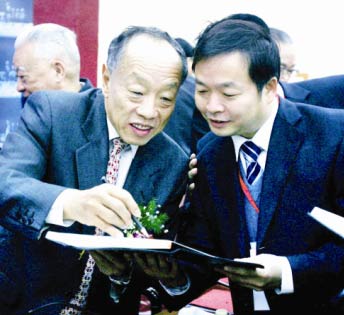 面對眾“粉絲”的要求,李肇星滿臉笑容,拿起筆挨個簽名。5分鐘過去了,前外長沒有挪動半步。