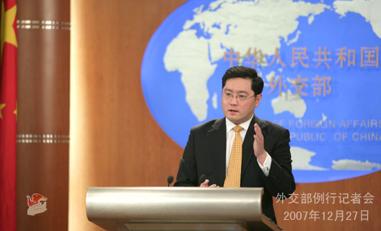秦剛:歡迎大家出席2007年最后一場外交部例行記者會,現在我愿意回答大家的提問。