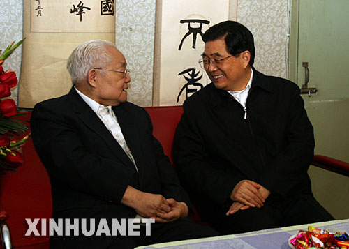 胡錦濤來到中關村一個寧靜的小區,走進吳文俊簡樸的居室,向這位老科學家表示親切的問候。
