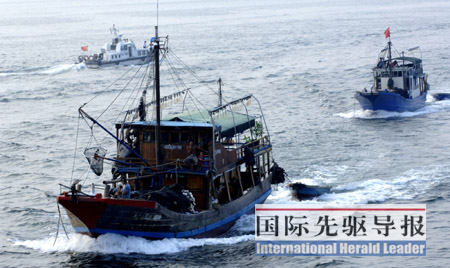 中國(guó)漁民們只得紛紛趴在船板上躲避槍擊,追趕被迫停止。