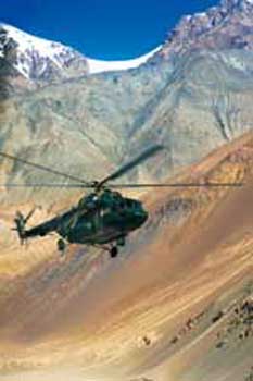 “最難飛到的是什布奇邊防連”,飛行員說。這個距離首都最遠(yuǎn)的邊防連處于四周全是高山的山谷中,直升機(jī)降落時要慢慢地像片樹葉掉下去,起飛時又盤旋著上升高度,小心翼翼地防止旋翼觸到大山上。