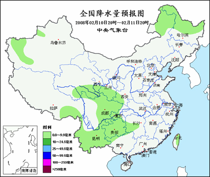 10日20時至11日20時,新疆天山西部和南疆西南部、西藏東南部、青海東南部、西北地區(qū)東南部、川西高原北部、云南東北部以及內(nèi)蒙古東北部、黑龍江中北部等地陰有小到中雪或雨夾雪,其中,西藏東南部、青海東南部、甘肅西南部等地的局部地區(qū)有中到大雪;四川盆地大部、重慶西南部、貴州、云南中南部、湖南西部以及臺灣東北部等地陰有小雨或雨夾雪,其中,貴州中西部的部分地區(qū)有凍雨。內(nèi)蒙古中東部、華北大部、東北、黃淮東部等地有4~6級偏北或偏西風(fēng);東部和南部海區(qū)將有6~8級偏北風(fēng)。