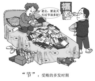 “節(jié)”即節(jié)日。調查表明,節(jié)日最容易發(fā)生賄賂犯罪,有約一半以上的賄賂犯罪是在節(jié)假日發(fā)生的。在“禮尚往來”幌子的掩蓋下,各種錢權交易最容易盛行。群眾中流傳一句順口溜:“干部廉不廉,重點看過年”。“節(jié)”已成為一些官員受賄的多發(fā)時期。