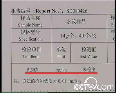 這家工廠(chǎng)的檢驗(yàn)記錄顯示,每一批次的蔬菜在進(jìn)廠(chǎng)前都會(huì)由河北檢驗(yàn)檢疫部門(mén)進(jìn)行抽檢或由企業(yè)送檢。相關(guān)的檢測(cè)結(jié)果顯示,在生產(chǎn)2007年10月1日和10月20日兩個(gè)批次的豬肉白菜餡餃子之前都進(jìn)行過(guò)相關(guān)的檢驗(yàn),洋白菜、大白菜以及韭菜、姜、蒜的檢測(cè)中都沒(méi)有檢出甲胺磷等高毒高殘留農(nóng)藥。