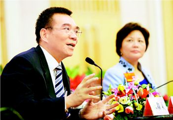 林毅夫夫婦分別來自全國人大北京代表團和臺灣代表團,上午9時,林毅夫在前,陳云英在后,準時出現在中外記者面前。他們面帶微笑,向記者頻頻點頭致意。