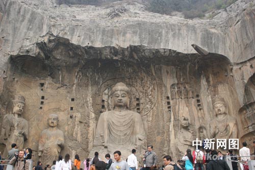 中新網4月19日電 “網上看河南”采風團18日上午探訪龍門石窟。龍門石窟位于河南省洛陽市南,為中國古代佛教石窟藝術的三大寶庫之一。
