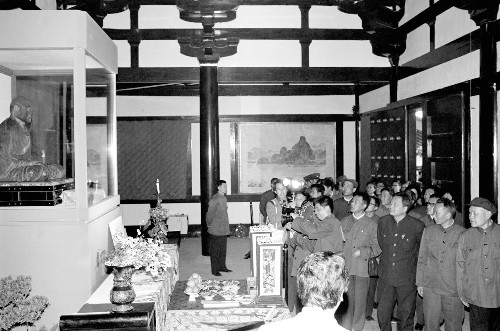 寺院大門上紅色橫額“唐招提寺”是日本孝謙女皇仿王羲之、王獻之的字體所書。寺內,松林蒼翠,庭院幽靜,殿宇重重,有天平時代的講堂、戒壇,奈良時代(公元710—789年)后期的金堂,鐮倉時代(公元1185一1333年)的鼓樓、禮堂及天平以后的佛像、法器和經卷。