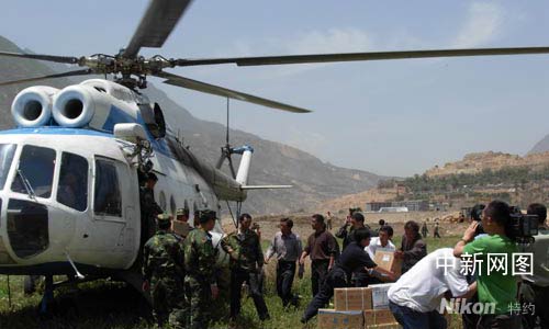 據介紹,這架直升機主要是勘查地形,順便帶來了10箱藥品。今天準備空投5架次,計劃在2-3天內向隴南市武都災區空投13到15架次,完成15噸左右救災物資的空投,其中有2噸藥品、10噸食品、3噸其他生活用品。(完)