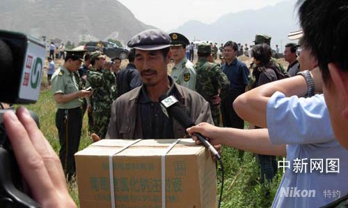 隴南災區收到蘭州軍區空軍某部空投的物資。 張晟福 侯志雄 攝影