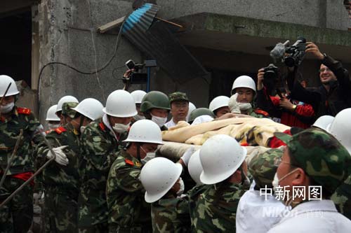 中新網什邡市鎣華鎮5月16日電(記者 齊彬)今日下午18時30分許,來自南京的消防官兵在四川什邡市鎣華鎮人和村救出1名被困超過100小時的幸存者。該名幸存者,是51歲的男子,名叫劉德云,他獲救的地點是鎣華鎮鎣峰化工廠。