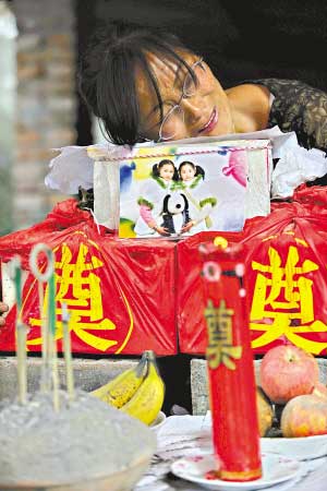 “娃娃被掏出來時我才知道,一塊預制板從側面壓到她身上,娃娃面目全非,連肺都被擠出來了,很慘。”朱曉蘭邊燒紙錢邊哭著說。
