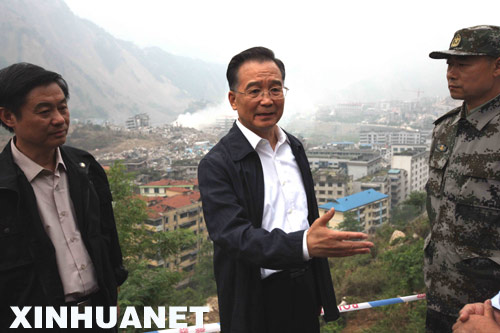 下午5時(shí)10分許,一抵達(dá)綿陽(yáng)機(jī)場(chǎng),溫家寶總理就和國(guó)務(wù)院副總理回良玉、國(guó)務(wù)委員馬凱以及總指揮部其他成員一起改乘直升機(jī)前往北川察看唐家山堰塞湖,看望禹里鄉(xiāng)準(zhǔn)備轉(zhuǎn)移的群眾,并前往在地震中遭受?chē)?yán)重毀壞的北川縣城,了解受災(zāi)情況。