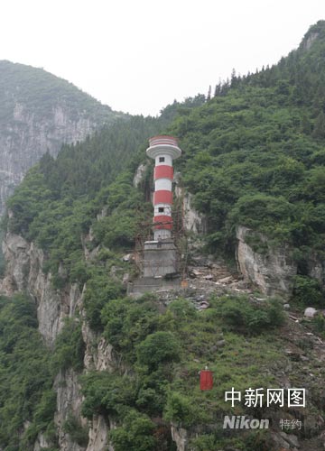 圖為巫峽航道上正在興建的大型塔標。