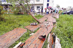此外,強大的龍卷風同時還造成低垌的兩間小學17間課室損毀,學校圍墻1700米坍塌;上述三村莊62間房屋也不同程度損毀,530多畝香蕉等農作物受災;6000多米的供電、郵電線路被損壞。據當地有關部門初步統計,持續10多分鐘的龍卷風已造成當地損失達1000多萬元。