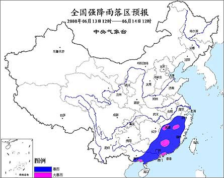 預計今天中午到明天中午,湖南東南部、江西中南部、浙江西部、福建大部、廣西東部和南部、廣東等地有暴雨,其中,廣西南部沿海、廣東北部和南部沿海、江西南部和中部、福建西北部等地的局部地區有大暴雨。