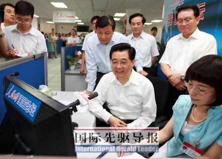 6月20日上午9點12分,人民網“強國論壇”率先發出預告帖:好消息!胡錦濤總書記通過強國論壇同網友們交流。此帖隨即被國內各大網站轉載,短短幾分鐘內,“胡錦濤即將與網友在線交流的消息”就高高掛在各大新聞網站醒目位置,蜂擁而至的訪問導致強國論壇一度出現擁堵。《國際先驅導報》記者在一個小時內數次嘗試登陸,均無法打開網頁或留言系統提示錯誤。