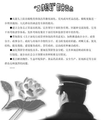 這一規(guī)劃確定,未來5年的反腐工作目標(biāo)是,“建成懲治和預(yù)防腐敗體系基本框架,拒腐防變教育長效機(jī)制初步建立,反腐倡廉法規(guī)制度比較健全,權(quán)力運(yùn)行監(jiān)控機(jī)制基本形成,從源頭上防治腐敗的體制改革繼續(xù)深化,黨風(fēng)政風(fēng)明顯改進(jìn),腐敗現(xiàn)象進(jìn)一步得到遏制,人民群眾的滿意度有新的提高”。