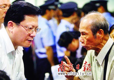 記者發(fā)現(xiàn),市民投訴的焦點主要集中在社保、住房、拆遷補(bǔ)償、環(huán)境污染以及法院判決執(zhí)行不力上。不少群眾由于常年信訪都沒有得到滿意答復(fù),情緒激動,一見張廣寧就握住市長的手死死不放,一邊流淚一邊反映情況。張廣寧在仔細(xì)聆聽市民投訴的同時,不時出言安慰市民放寬心。對于市民提出的各類問題,張廣寧有的從政策上給予解釋引導(dǎo),有的當(dāng)場批示,要求現(xiàn)場接訪的委辦局負(fù)責(zé)人立刻落實。