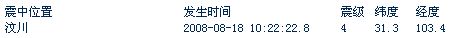 據地震臺網測定,北京時間8月18日10時22分,在汶川(北緯31.3,東經103.4) 發生4.0級地震。