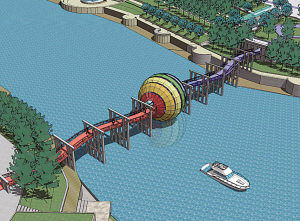 該市市政公用局周科長介紹,分界線上的標志物將與淮安一歷史遺存老橋墩(規劃建設的“紅橋”)相融合一并建設,該橋始建于上世紀三十年代,曾見證過淮安的滄桑歷史,分界線上的標志物與具有一定歷史意義的老橋墩相融合,更增添了城市特色,也深化了文化內涵。標志物的“長相”是一個球形,位于紅橋中間位置,亦是河道中心線位置。以球形為母體,分為南北兩半球,北側為漸變冷色調,南側為漸變暖色調,喻意地球上的南北氣候特征。行人可從球中穿過,感受跨越南北氣候帶的感觀變化。 (沈國良 井建國 朱鼎兆)