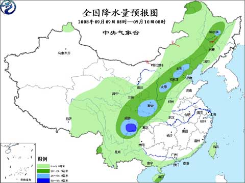 中新網9月9日電 據中國天氣網消息,受冷空氣東移影響,未來三天,西北地區中東部、內蒙古中東部、華北、東北大部自西向東將先后出現小到中雨或雷陣雨,部分地區有大雨。內蒙古大部、東北地區有4~6級偏北風或偏南風。