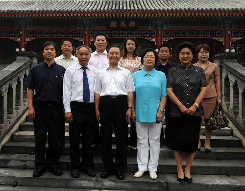 溫家寶和中共中央政治局委員、國務委員劉延東,與教師們一起在西花廳前合影。新華社記者 李學仁 攝