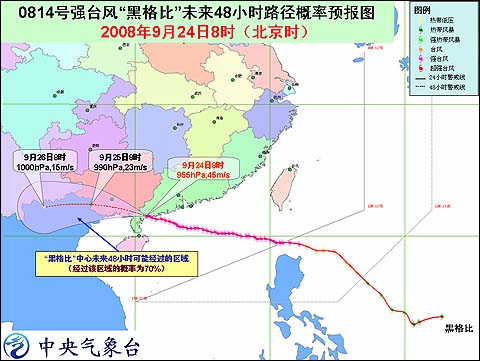 “黑格比”24日08時未來48小時路徑概率預(yù)報圖