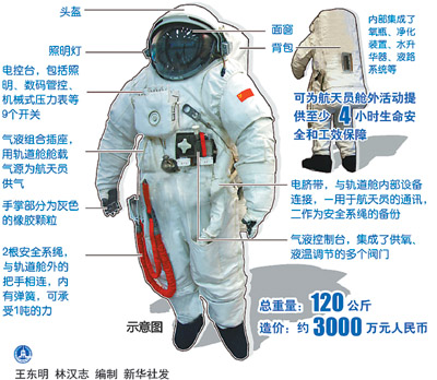 圖為我國研制的“飛天”艙外航天服。