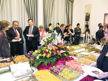 中新網9月26日電 據意大利《歐聯時報》報道,中國駐意大利大使館9月25日舉行慶祝中國成立59周年招待會。意大利民主黨主席法西諾、意大利前外長德米-凱利斯、意大利國家警察司令蒙加-內力、意大利眾議院國際關系局局長皮薩-利諾,意中友協主席維多利亞-曼菁妮等意大利政要、議員、一些地方政權機構代表、軍隊、工商界人士及外國駐意使節等近300多人出席。來賓們高度評價中國建國59年來取得的輝煌成就,對中國成功舉辦奧運會和殘奧會表示贊賞,并對當天神舟七號載人飛船順利升空表示祝賀。