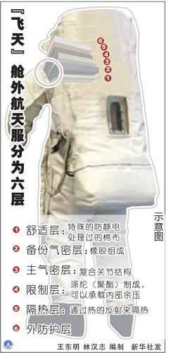 航天服的左臂上印著鮮紅的國(guó)旗,右臂上有兩個(gè)大字:“飛天”。航天服研究室主任劉向陽(yáng)說(shuō),“飛天”是中國(guó)研制的第一代艙外航天服,整體設(shè)計(jì)和各部件的設(shè)計(jì)、組裝都是中國(guó)人自己完成的。就完成目前任務(wù)的能力而言,接近國(guó)際水平。