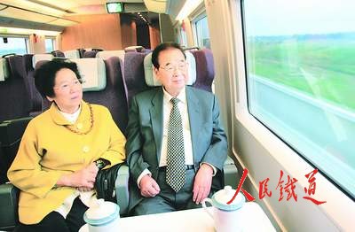 隨后,李鵬走進駕駛室,興致勃勃地察看了動車組列車控制系統和動車組司機的操縱情況。劉志軍向李鵬介紹:我們乘坐的列車是靠計算機控制的。中央指揮系統把指令傳輸到軌道上的相關設備,列車從軌道上的設備取得信號,實施行車、加速、減速、制動等技術動作。這一系統是目前世界上最先進的。李鵬又了解了京津城際鐵路占地情況,詢問如何解決與公路交叉等問題。劉志軍匯報說,京津城際鐵路87%是橋梁,每公里橋梁與傳統的路基相比可以節省45畝土地,同時高架的橋梁也杜絕了與公路的平面交叉,有利于保證安全。劉志軍說,目前在建的京滬高速鐵路和一大批客運專線都借鑒了京津城際鐵路的成功經驗,以橋代路的模式被廣泛應用。李鵬稱贊京津城際鐵路創造了世界高速鐵路的最新成果。他關切地詢問,像京津城際這樣的高速鐵路,現在建設的有多少?劉志軍說,目前在建的高速鐵路和客運專線有7000公里,再過3至5年,京滬、京廣、京哈、隴海(東段)、哈大、東南沿海等客運專線將全線貫通。李鵬聽了非常高興。他說,近年來,鐵路建設和技術裝備現代化的發展很快,老百姓享受到了鐵路改革發展的成果。他希望鐵路部門高標準、高質量地建好京滬高速鐵路和其他客運專線,為旅客提供更加便利、快捷的出行條件。